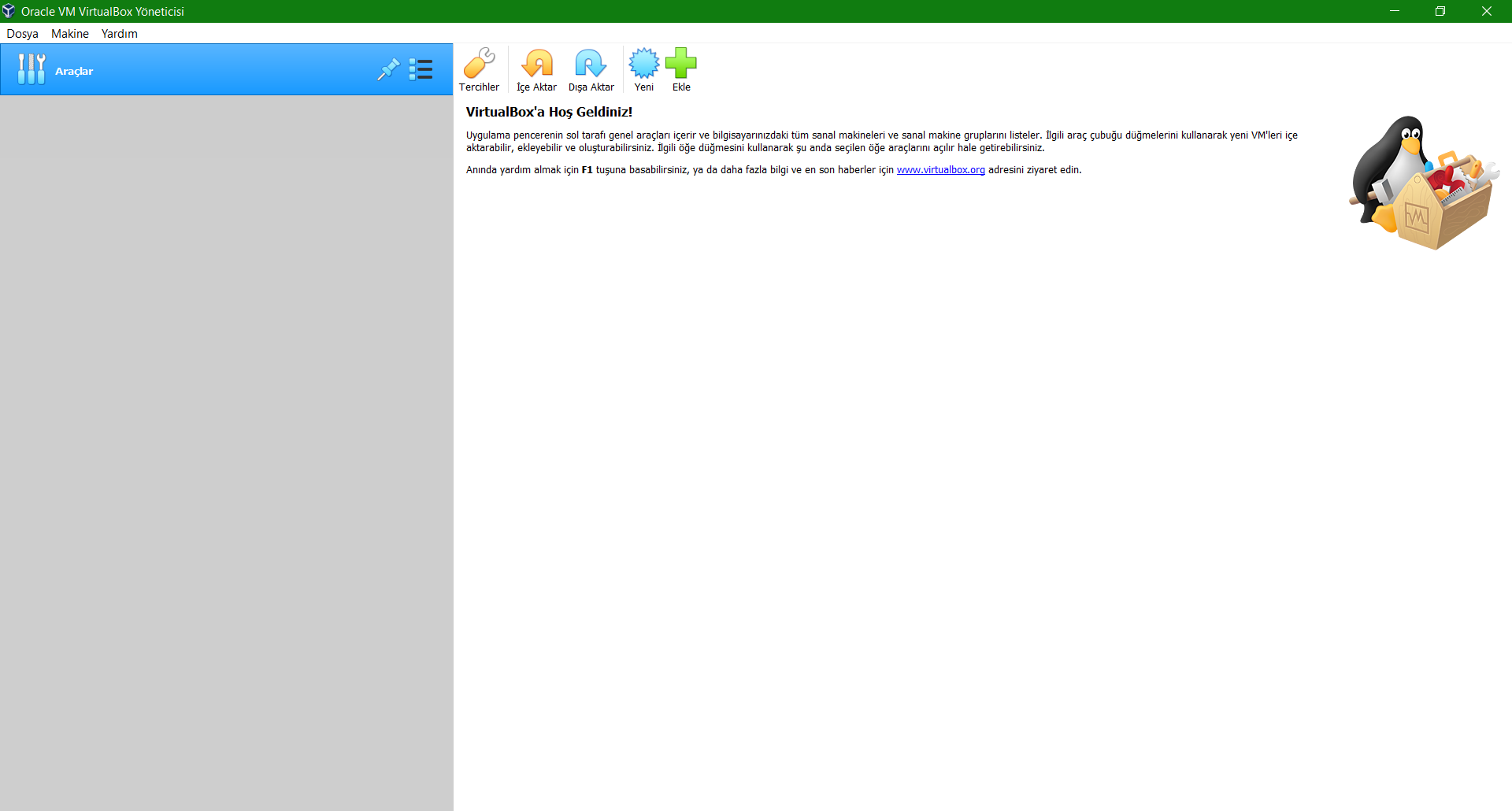 VirtualBox sanal makine yöneticisini kurmak için tıklayınız.