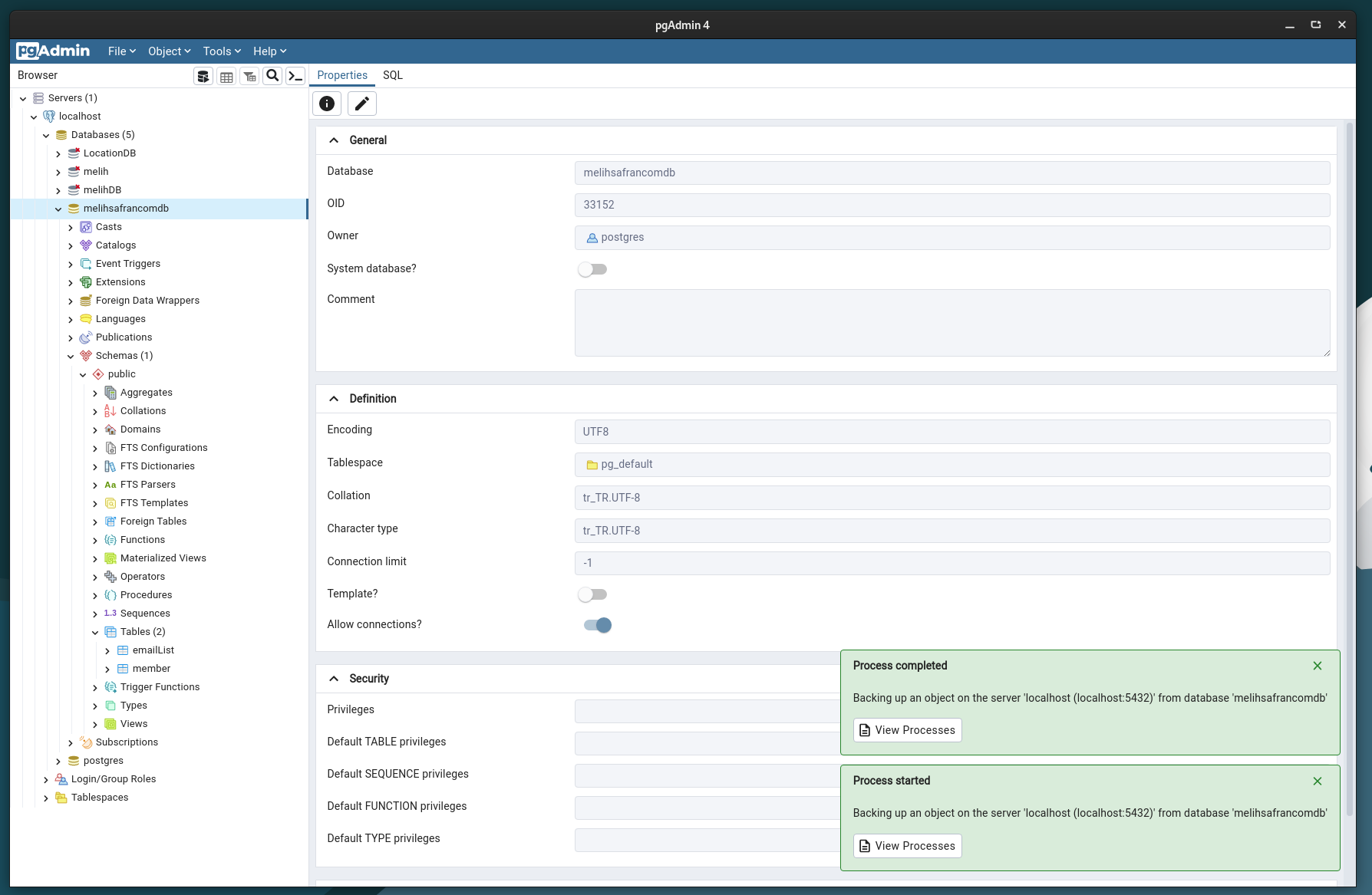 PostgreSQL pgAdmin aracı ile kolayca veritabanı yedekleme işlemleri yapılabilir.